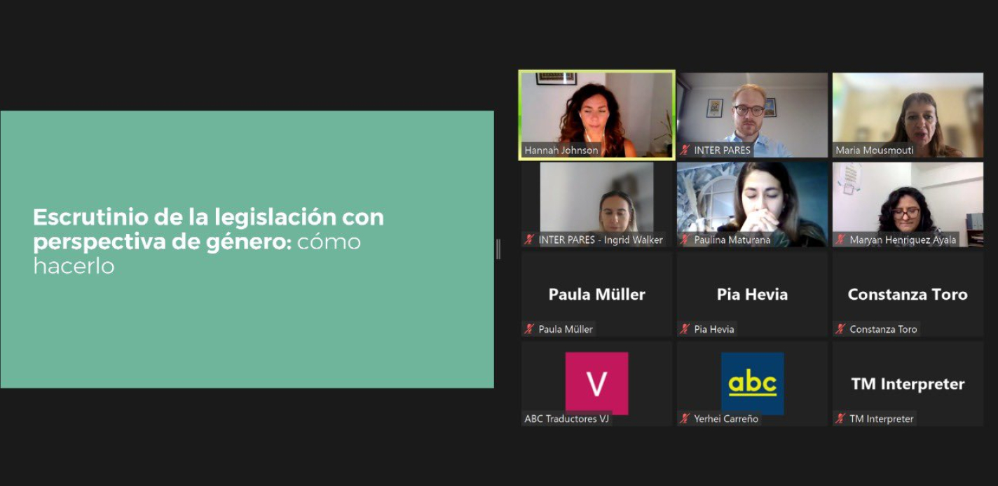 On 15 July, INTER PARES carried out a workshop on gender-sensitive post-legislative scrutiny with the staff of the Law Evaluation Department of the Chamber of Deputies of Chile tasked with carrying out post-legislative scrutiny. The session was led by Hannah Johnson, senior gender adviser of INTER PARES, and Dr. Maria Mousmouti, Associate Research Fellow of the Institute of Advanced Legal Studies, and Executive Director of the Centre for European Constitutional Law.